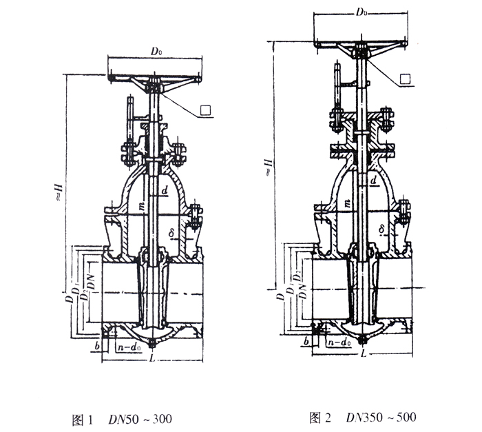 船用法蘭鑄鐵閘閥結(jié)構(gòu)圖與尺寸表