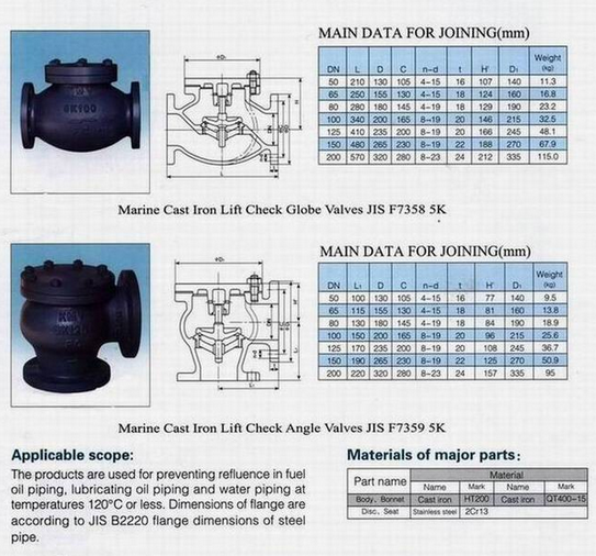 船用日標(biāo)鑄鐵直通止回閥F7358適用范圍